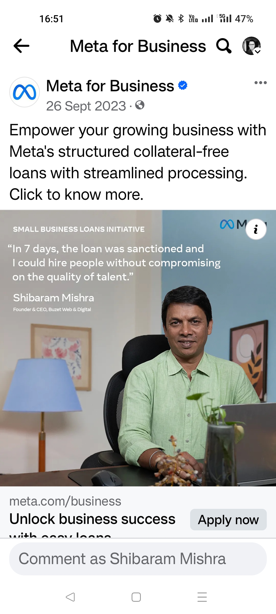 Shibaram has also been featured by Meta (Facebook for Business) as an agency partner, showing exceptional growth in Facebook Ads, and also getting partner support like training, knowledgebase support and financial support from Meta for growth.